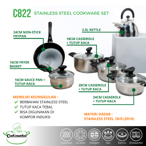 Seluruh produk alat masak Continental Premium Kitchenware sudah lulus uji bebas dari semua bahan yang beracun dan berpotensi menyebabkan Kanker. 3 zat tersebut antara lain Non-PFOA, Non-Lead, dan Non-Cadmium.