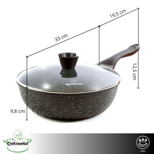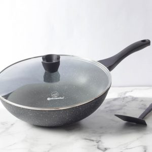 - Lapisan marble Wok Continental Kitchenware tersebut juga mengandung molekul-molekul silver dan teknologi ini akan membuat masakan anda matang pada setiap sisi permukaannya